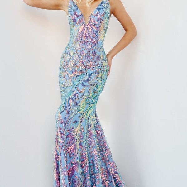 Enter the realm of sparkles with the Jovani 07499 Mermaid Evening Gown, a stunning introduction destined to captivate hearts and command attention. This gown boasts delicate spaghetti straps and a sleeveless silhouette, decorated with a gorgeous corset bodice adorned with heat-set stones and intricate lace embellishments. With its swish sweep train and midrise back, secured with a zipper closure, this gown ensures a perfect blend of fashion and luxury. Make a splash in this breathtaking ensemble that exudes charm and allure whether you’re gracing the red carpet, prom, or attending a glamorous gala.